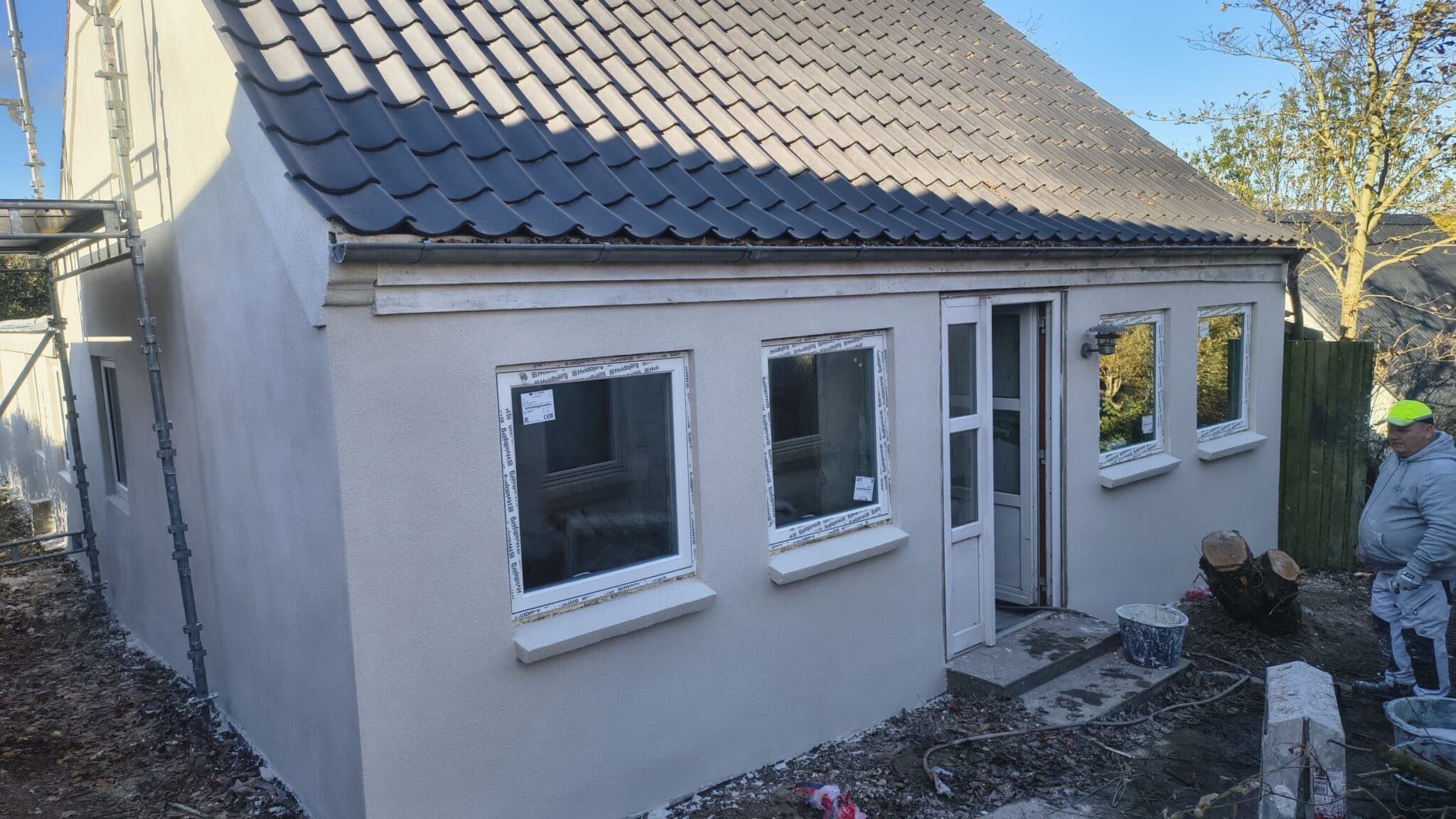 - Udvendig isolering af ydervægge (rockwool eller polystyren) med netpuds
